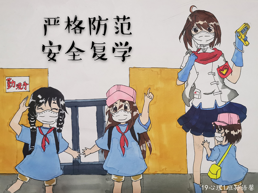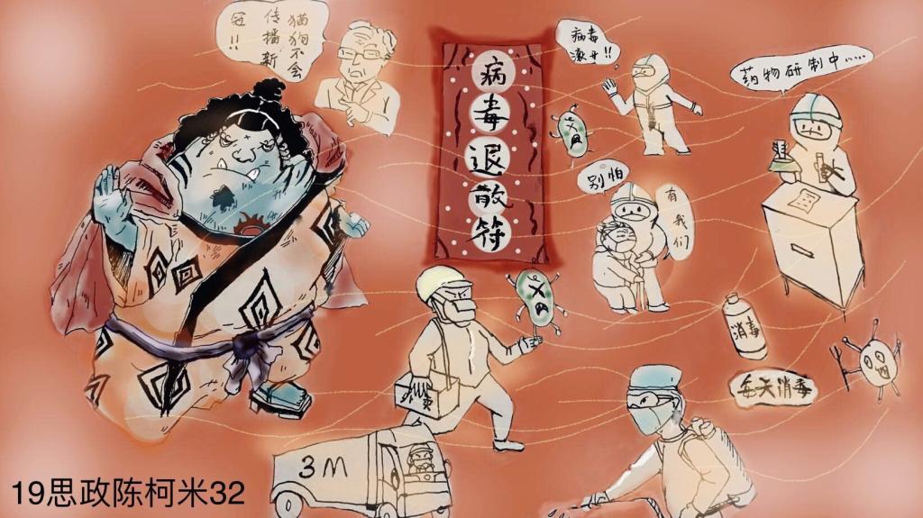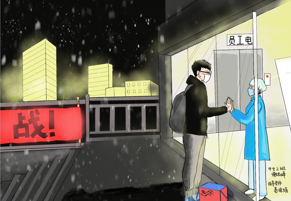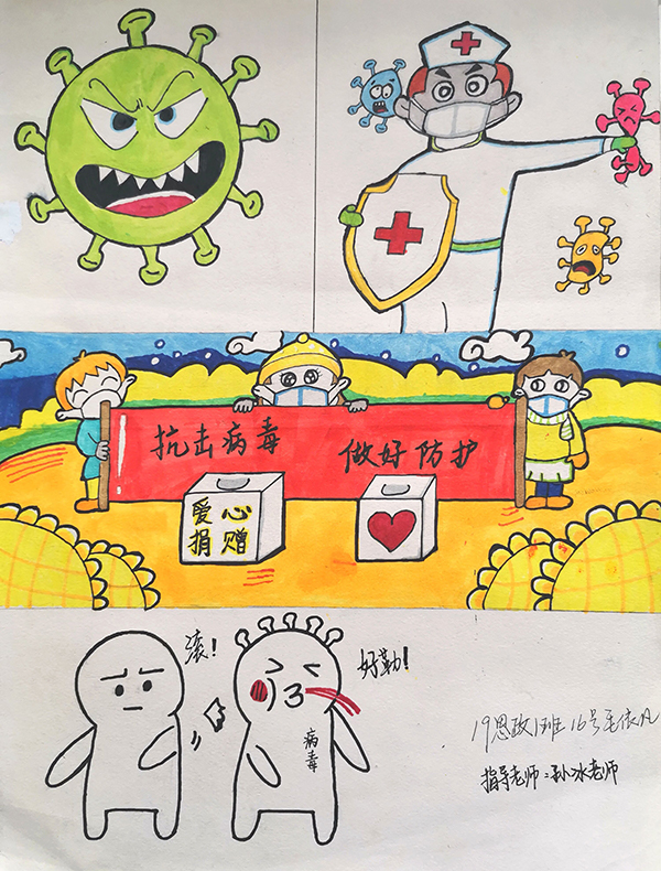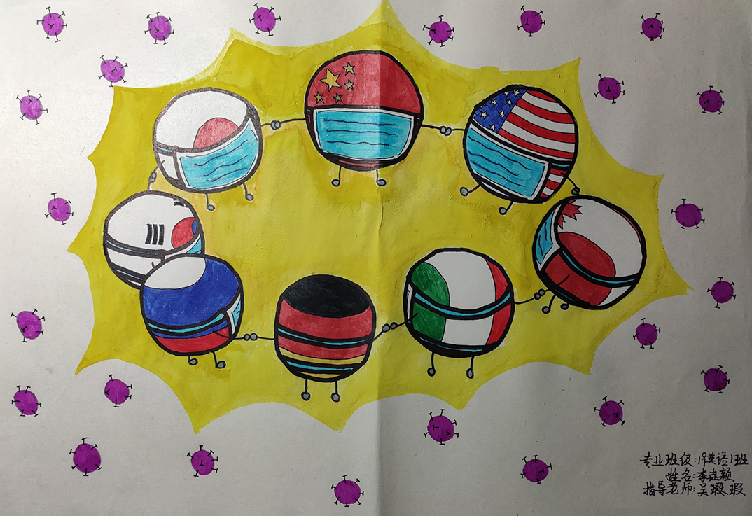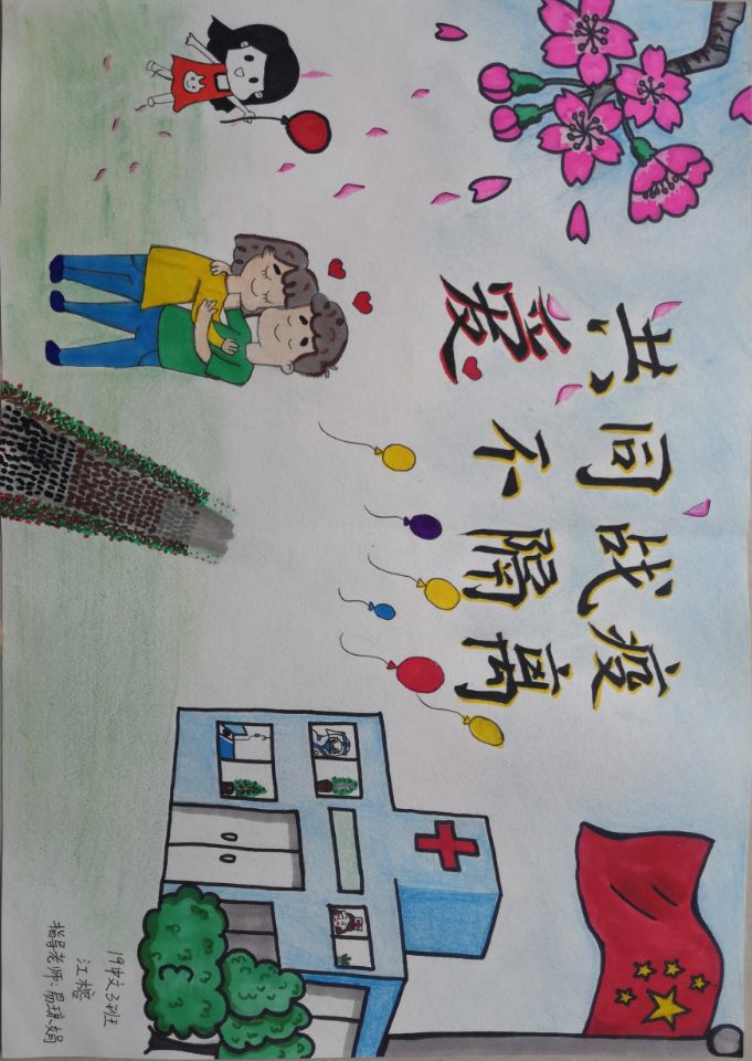 简笔画教学是《美术基础》课程内容中的重要组成部分,教学重点在于加强师范生的简笔画绘画技能,提高美术素养与多元化教学能力,为今后的教学实践打下基础。这次主题创作活动是课程组孙冰、曾素艳、谭媛元、吴瑕、易琼娟五位教师共同探究新时代课堂教学中“课程思政”的一次教学实践。针对抗击疫情期间师生们对抗疫进展与社会现象的关注,结合美术创作“以人民为中心”的指导思想,课程组五位教师通过多次研讨课程内容与授课方式,决定结合慕课平台线上教学进度与课程内容,组织所授班级包括科教、体育、音乐、应数等十个专业926名学生(师范类非美术学专业)共同参与“战疫情·爱不隔离”简笔画主题创作。同学们在掌握简笔画学习与表现规律的同时,将抗疫期间的英雄事迹、感人镜头用画笔展现,将感动之情运用隐喻、借喻、拟人或直抒胸臆等多种手法表现,表达青年的爱国情怀与内心感悟。课程组五位教师在十个班级中选出了75幅优秀作品进行线上展览,呈现出不同学科专业学生们凭借艺术的力量以“艺”抗“疫”。