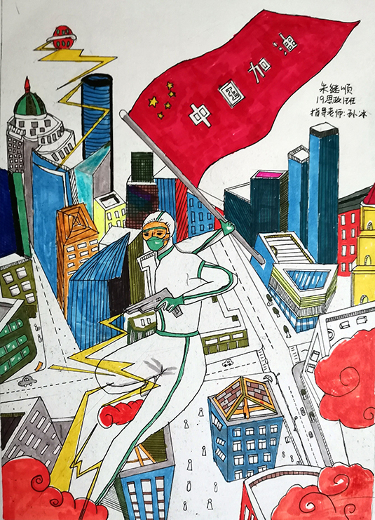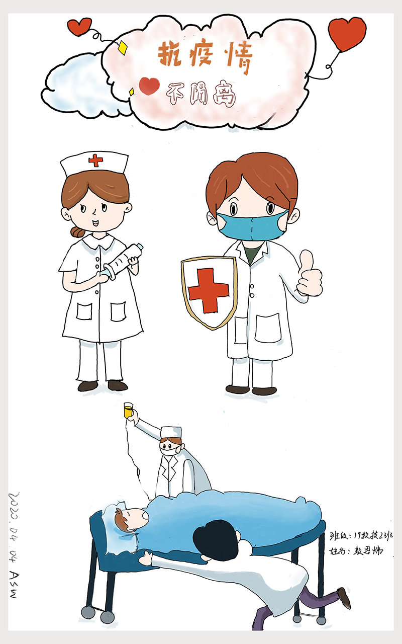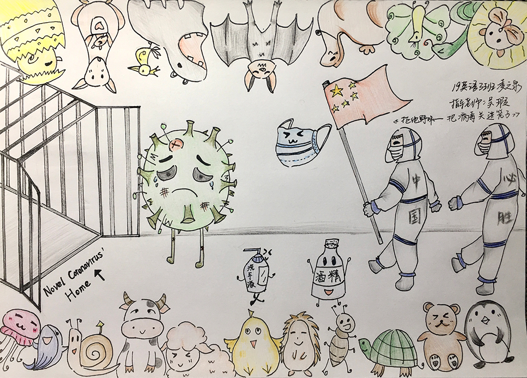 《美术基础》课程组教学团队结合线上教学情况,思考教学内容与课程思政,探究课堂在社会教育中的育人功能,共同开展了以“战疫情·爱不隔离”为主题的简笔画创作活动,组织学生以简笔画的形式描绘抗疫期间的个人思考与感悟,绘制出内心的关怀和感动,表达爱国情怀,引领学生树立正确价值观,激励青年一代“不忘初心、牢记使命”。