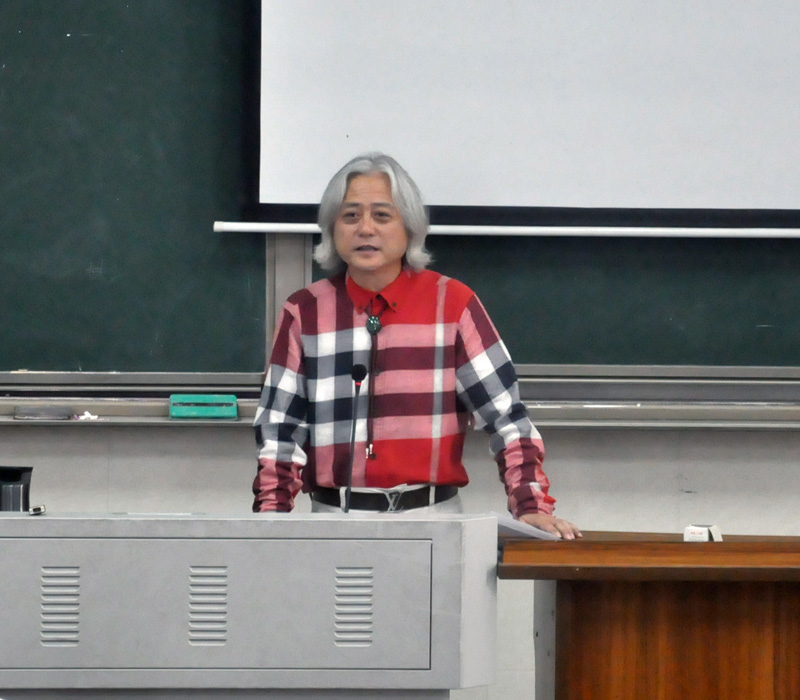 随后,毛光辉教授进行了题为“现代彩墨艺术初探”的学术讲座。毛教授凭着自己在绘画艺术领域的丰富阅历和积累多年的经验,结合个人绘画作品,重点介绍了彩墨绘画的特点,阐述了绘画的文化交融性。讲座激发了全场师生的兴趣,现场掌声不断。