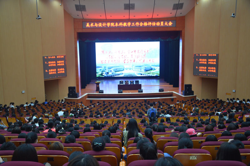 1300名学生在迎评工作学生动员大会上慷慨激昂地宣誓。院长范迎春、党总支书记苏美华、副书记舒克斌及各班辅导员、班主任出席了会议。