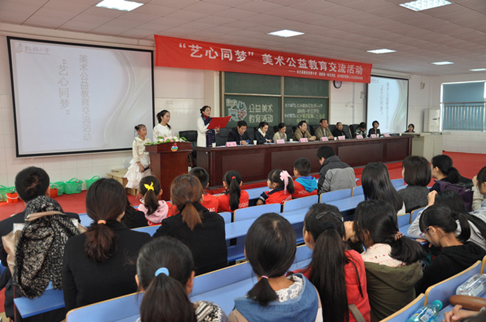 与虹桥小学联合举行“艺心同梦”美术公益教育交流活动。校领导阳柏苏、刘志敏,高新区教育局、省女画家协会、省青年美术家协会、慧灵社区机构、虹桥小学及我校教务处、麻豆av