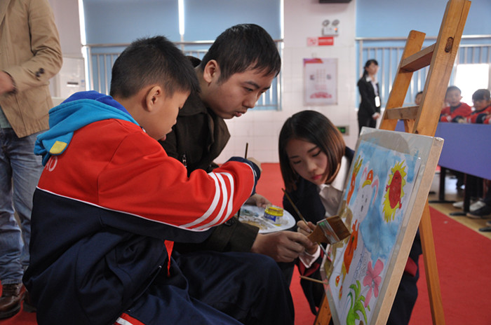 2011级美术学师范生一直坚持为公益美术教育服务,三年来,他们每月都会来到慧灵社区为智障人士进行公益教育活动,用艺术点亮他们的希望,帮助他们开启和外界交流的通道,最大限度发掘孩子的潜能,提升他们为社会出力的才智,产生了很好的社会效益。