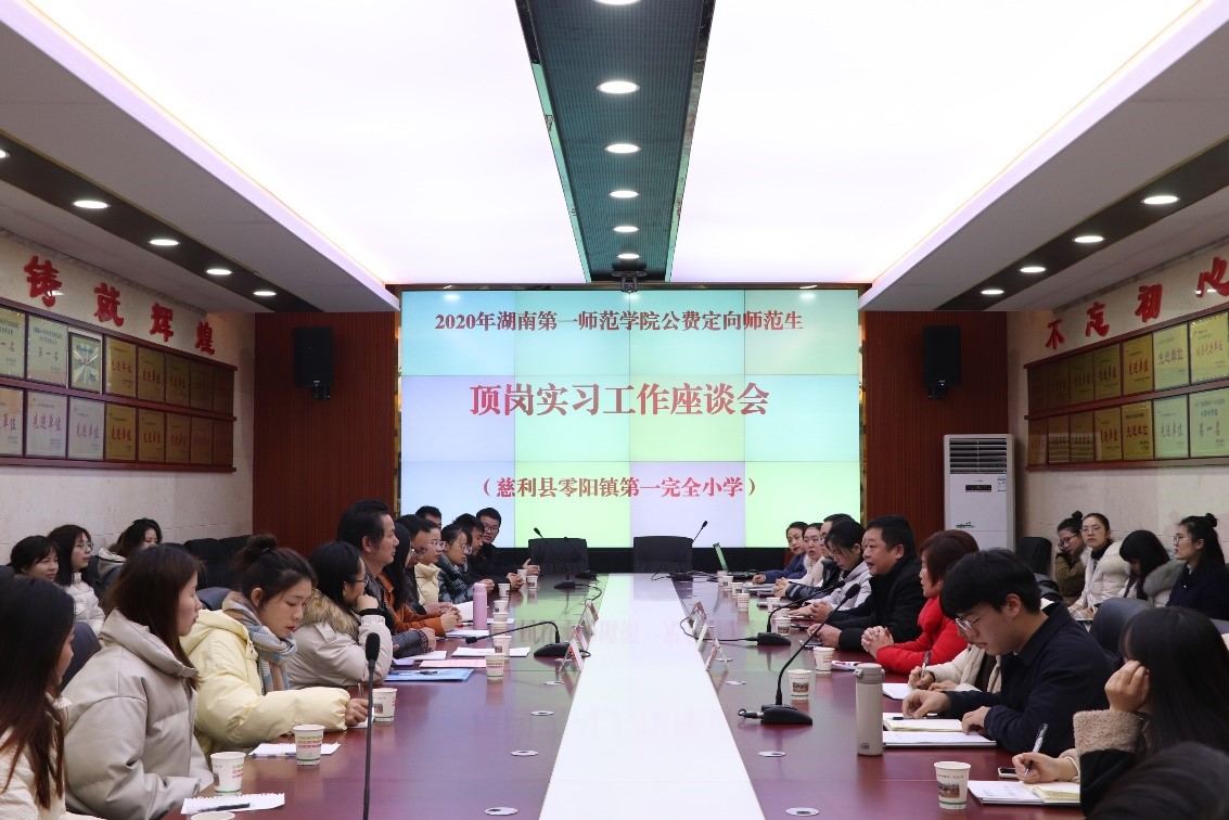慈利县教育局领导及校长认为一师培养的学生都有浓郁的教育情怀。工作本领强,能吃苦耐劳,乐于向指导老师请教。感谢第一师范为慈利县教育界培养了大量优秀的教师后备军。永定区教育局和武陵源区教育局的校长们介绍了学校培养方案与措施,对实习生的工作情况进行了反馈与总结,并对实习生积极主动、踏实肯干的工作态度予以赞扬与肯定,表示一师的实习生肯吃苦、服从安排且十分好学。同时武陵源区教育局邓校长针对实习教师们的今后发展提出了几点希冀。实习教师在踏入实习学校前是受教育者,而踏入实习学校以后是教育者。实习教师们要肩负起自己的责任——教书育人。实习期间,不断去汲取优秀教师的工作经验,充实自我,为以后的工作打下坚实的基础。