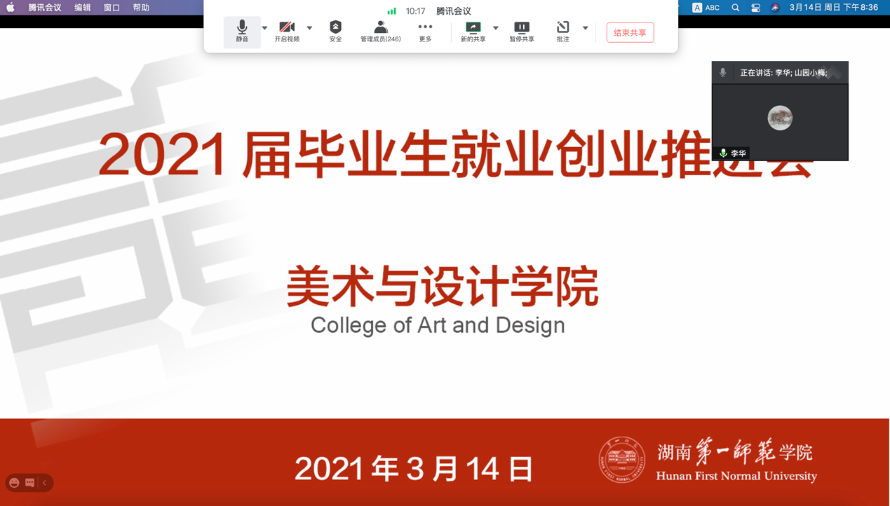 通过腾讯线上会议形式召开了2021届毕业生就业创业推进会。学院党总支范迎春书记、李华院长、舒克斌副书记、毕业班辅导员、教科办老师及2021届全体毕业生参加会议。会上李院长针对全国的就业形势提出了就业的紧迫性,鼓励同学们积极投入到求职中。舒书记提出了就业的重要性,并针对就业工作的开展,提出了班级就业工作的具体方法,充分发挥班长的带头作用,从而带动更多的同学积极就业。教科办钱老师和林老师针对毕业生重要节点的工作进行了布置,学工办主任武湘梅则从就业信息获取、就业信息填报、求职安全三个方面进行了指导和强调。