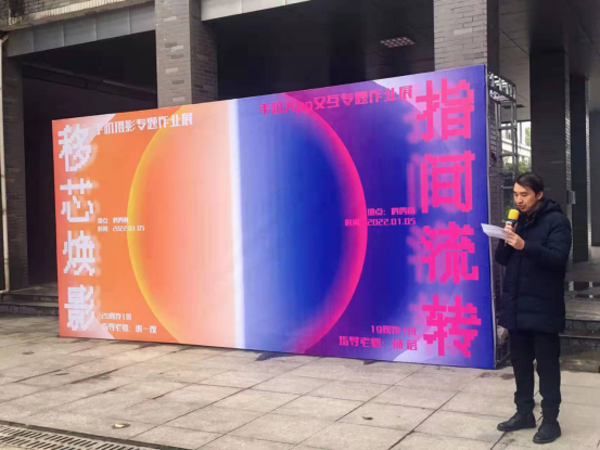 开幕式由视觉传达与产品设计教研室主任谢一槐老师主持,他介绍到:“本次两个课程都有一个显著的特点,就是以手机这一数字世界重要的接入端口为创作平台,探索视觉传达设计在数字文化时代,如何在新的硬件、新的技术、新的平台、新的领域中发挥作用。
