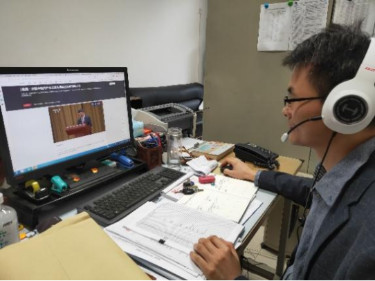 党委副书记(主持工作)杨虎智、副书记戴建宇正在观看大会直播