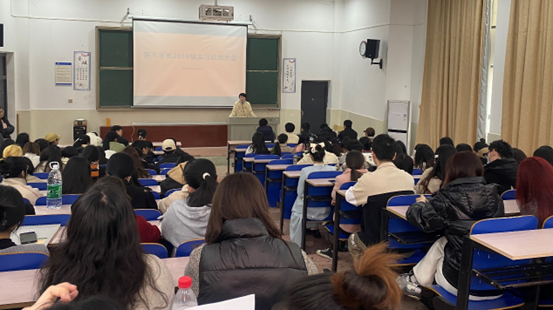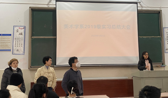 2019级全体美术学专业学生于鹤鸣南111教室召开了实习总结大会。蔡晓曦博士代表学院出席了会议,出席会议的还有曾素艳、丁凯、易琼娟老师3位实习带队老师。本次会议由曾素艳老师主持。