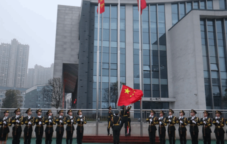 国旗护卫队的队员们身姿挺拔,步伐整齐有力,护卫着鲜艳的五星红旗,以坚定的步伐向升旗台迈进。伴随着国歌激昂的旋律,五星红旗在晨风中缓缓升起,迎风飘扬。全体师生庄严肃立,目光紧紧追随国旗,齐声高唱国歌,展现出饱满的精神状态与昂扬的斗志,表达了一师人对祖国最崇高的敬意和最深沉的热爱。