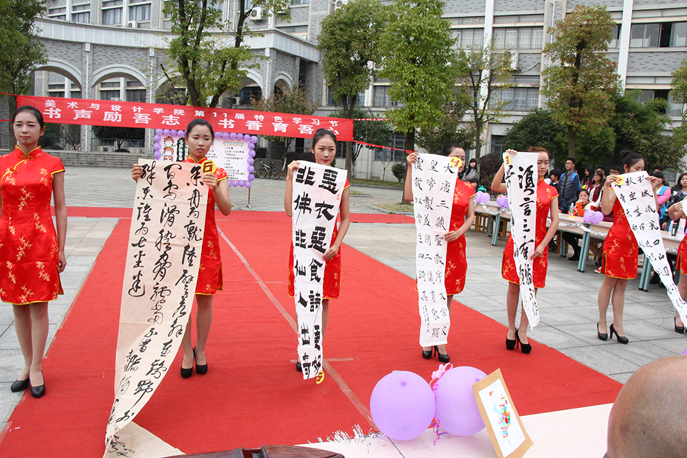 学习节特色活动在古典舞中拉开帷幕。当舞台中央在进行模特才艺表演、朗诵表演时,书法大赛、手绘一师地图大赛的选手们在各自比赛区域中即兴发挥。参赛选手都将自己的感情融入在书法、画作当中,虽然最后获奖的十二幅手绘地图作品、六幅书法作品各具特色,但都传达着共同的精神,那就是对学习的热爱、对一师的热爱。这次具有美术与设计专业特色学习节活动是今年我校以“励志求索,书意一师”为主题的第十一届青年学习节的有机部分。