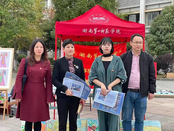 党委书记邹华秀,院长张娴带领学院“三下乡”实践团带队指导老师谷炽辉、武湘梅、冯旭指导展览工作。