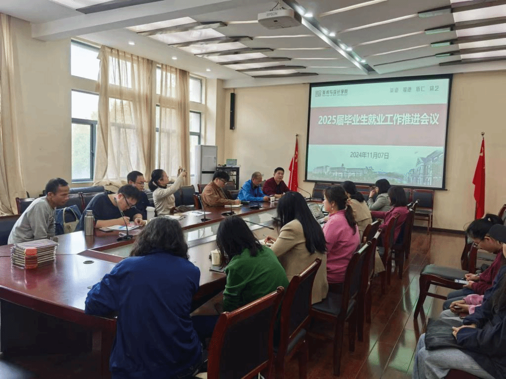 在鹤鸣南203会议室召开2025届毕业生就业工作推进会。会议由院党委书记杨虎智主持,全院教师参加会议。