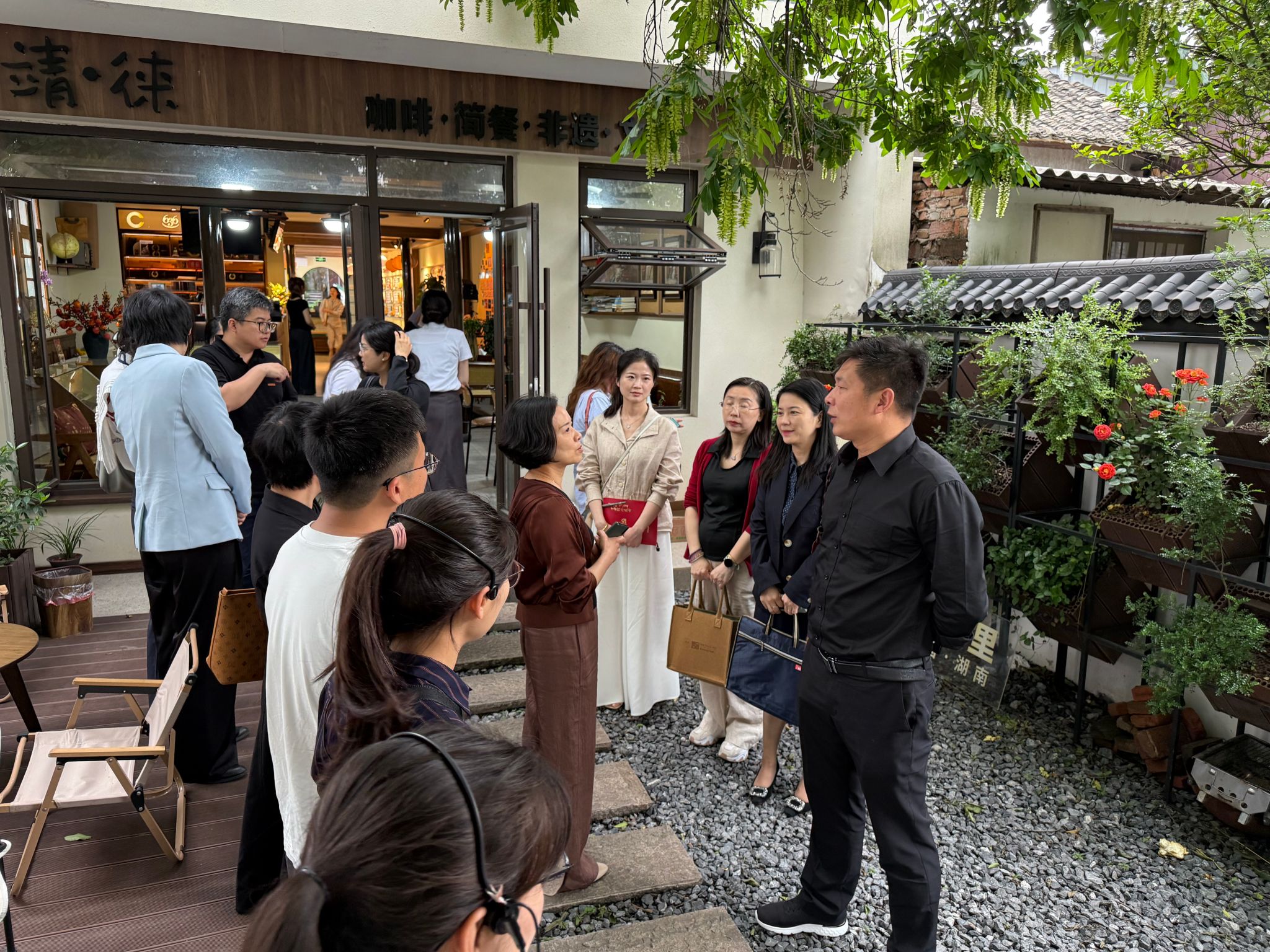 活动中,师生先后深入靖港古镇青年人才街区、湘韵生活馆、非遗工坊及艺术展馆等,欣赏非遗技艺,与传承人深入交流“传统工艺的现代设计转化”,详细了解传统工艺与文旅创新融合的实践经验。