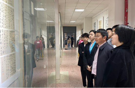 院长张娴、副书记杨虎智(主持工作)、副院长蔡惠萌、毕业展负责人李楚智及参展学生代表陪同参观。