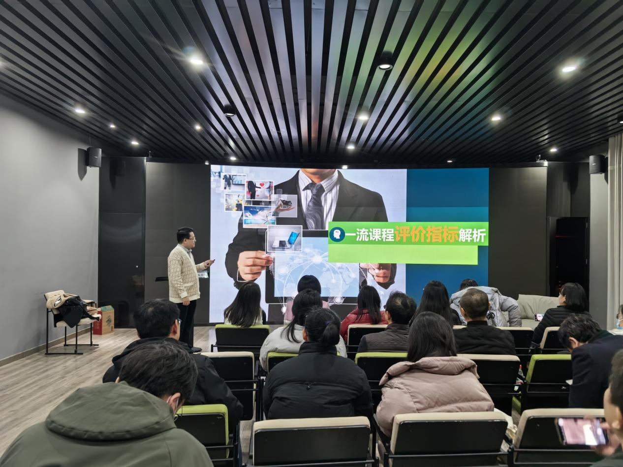 教师开展一流课程培训。美设院领导、申报国家一流课程、校级金课、精品在线课程、教学创新大赛的老师参加了本次讲座,讲座由副院长蔡晓曦主持。