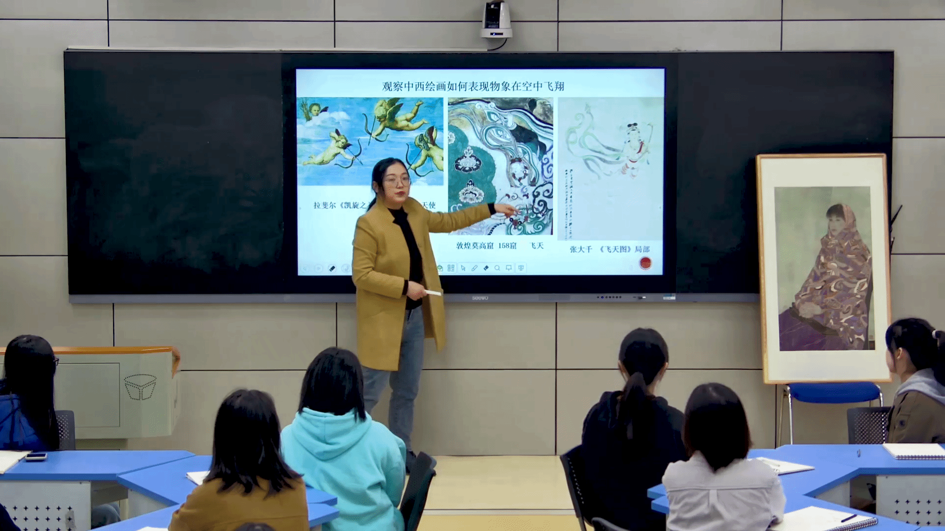在超星上建立课程资源,线上创设课程资料460个,建立习题库等,学生随时随地学习,提升学习兴趣与能力。创新性设置主题创作环节,如专题性人物画创作与研究,分组在微格教室、智慧教室实施实训开展研讨式学习,提高学生创作能力、参与意识与研究思维。教研成果融入教学,在线上资源的依托下,开展课内拓展实训方式、课外创设锻炼途径。