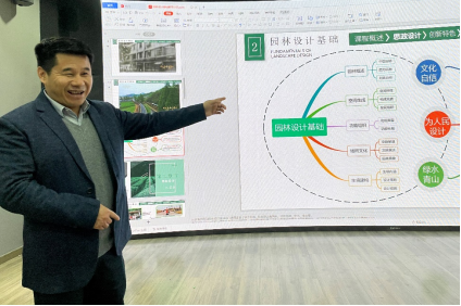 活动伊始,蔡晓曦博士向大家介绍了她主讲的校级思政教学竞赛一等奖课程《园林设计基础》,她从“初心—整体思路设计、实践—课程具体实践、反思—经验教训梳理”三个方面分享思政课程建设思路,并以其中的“湿地公园功能布局”章节为示例,展示了如何让学生自主融入到课程思政的学习当中。