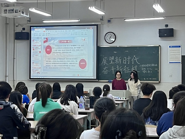 团学会在鹤鸣南教室开展了以“展望新时代,奋斗新征程”为主题的团课学习。本次团课学院2021级和2022级全体同学参加。