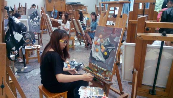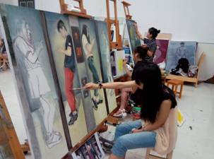 油画教学实训室主要用于学生专业课的实训教学和实践活动,同时也为本院其他专业学生提供油画作品赏析的各种服务。除正常的教学实习安排外,其他专业学生如有需要均可预约使用。