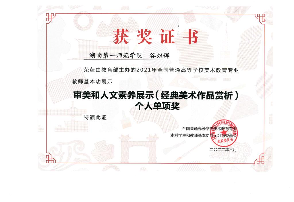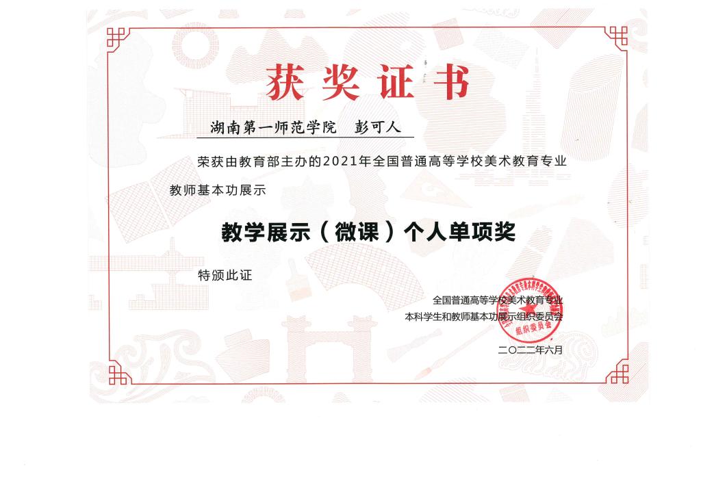 高度重视,积极备赛,三位参赛教师均斩获佳绩,共获五项个人大奖,我校以排名第八的成绩获得高校优秀组织奖!其中谭媛元老师获个人全能一等奖和专业能力单项奖、彭可人老师获个人全能二等奖和教学展示单项奖、谷炽辉老师获审美和人文素养展示单项奖!