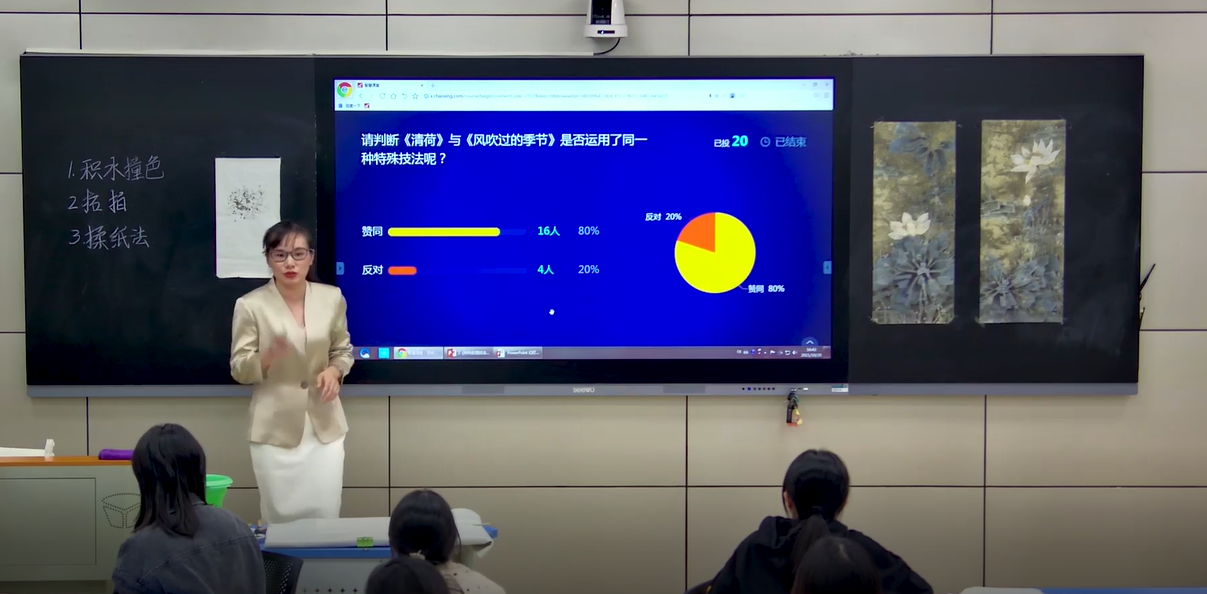 2、实践知识线上早知道和线下具体案例实训,可以让学生不受时间和空间的限制,解决学习问题和优化学习效果。灵活运用线上线下的课程讨论、师生互动、生生互动与互评,闭环重复的反思与实训习惯有效提升内驱学习力,提升学生工笔花鸟画课程教学和艺术创作的设计和开发、组织与实施、评价与反思的能力,能胜任基础教育小学阶段中国画的教学和研究工作。